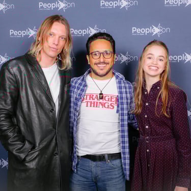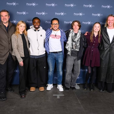 Noah Schnapp & David Harbour & Caleb McLaughlin & Raphael Luce & Nell Fisher & Jamie Campbell Bower